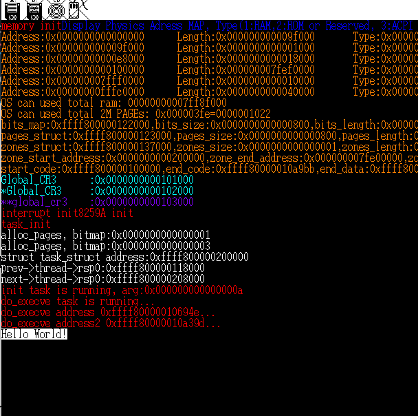 sys_printf的系统调用向量号是1,内部封装了函数color_printk函数,并借助RDI寄存器(参数regs的rdi成员变量)向color_printk传递打印的字符串。